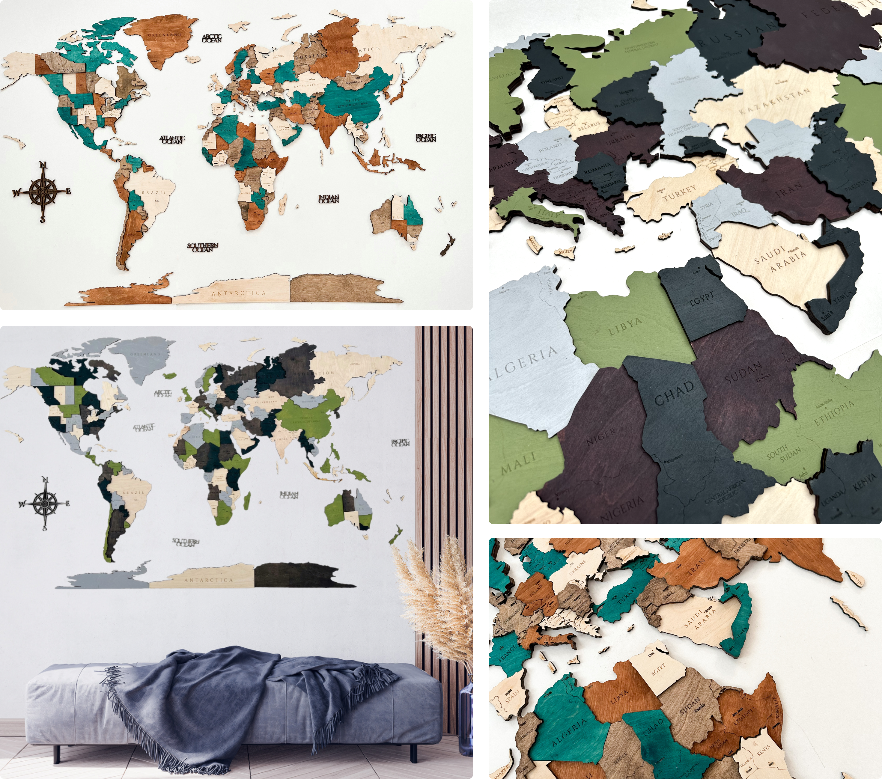 Nos uniques cartes 3D du monde et nos originales décorations murales vont donner l’inspriation à vos projets