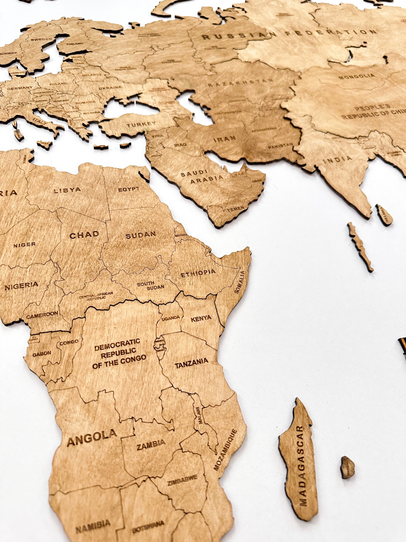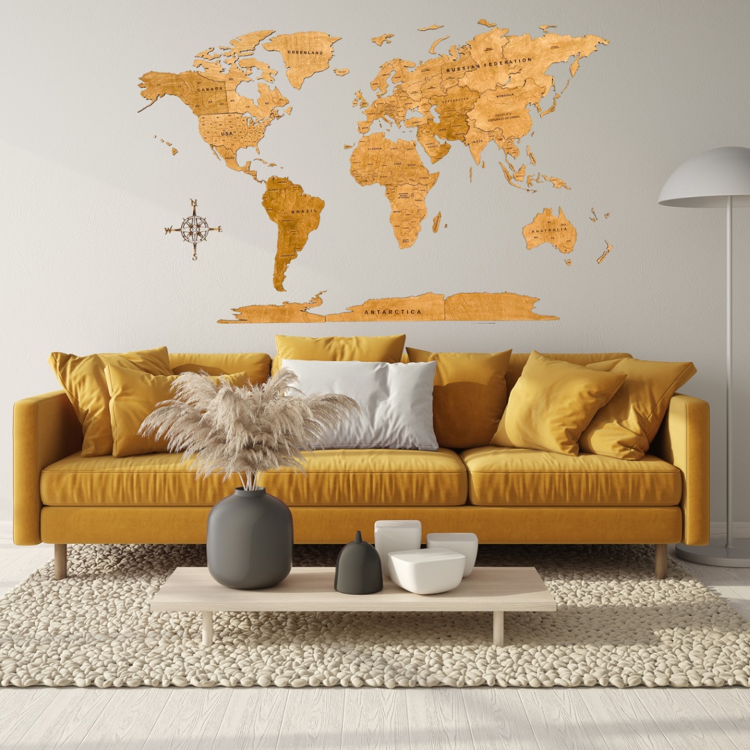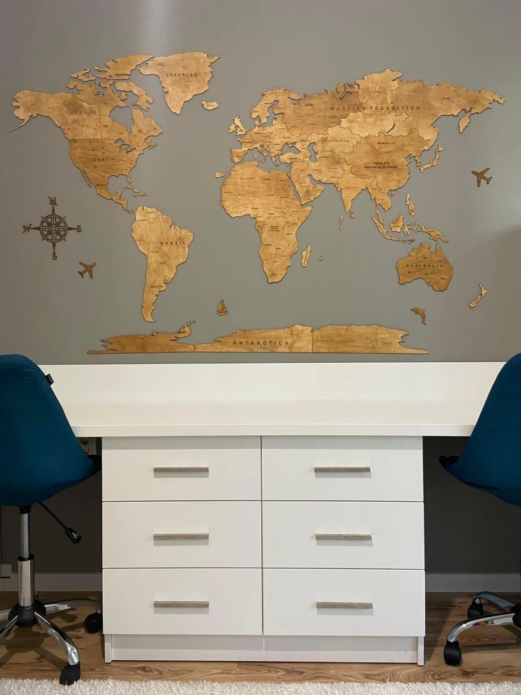 Apportez du style et de la finesse à votre espace de travail ou de vie grace à nos cartes du monde 2D. C’est un choix parfait pour ceux qui savent apprécier un design minimaliste et le plus pure. Notre carte va compléter avec élégance tout intérieur et donner une hysionomie particulière, inoubliable à votre maison ou à votre bureau.
